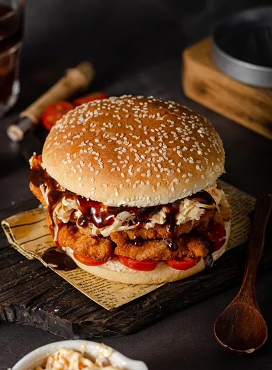 گوشت گاو دوبل، هالاپینو تند، پنیر ذوب شده و سس دودی.