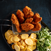 مرغ سرخ شده ترد، سس مایونز خامه ای و کاهو.